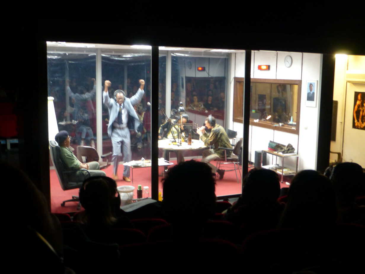 Il s’agissait de révéler la banalité du génocide à travers le travail quotidien des animateurs et journalistes. On les voit s’amuser et boire une bière, tandis que les cadavres s’amoncellent hors du studio. Le théâtre permet de montrer la face cachée.