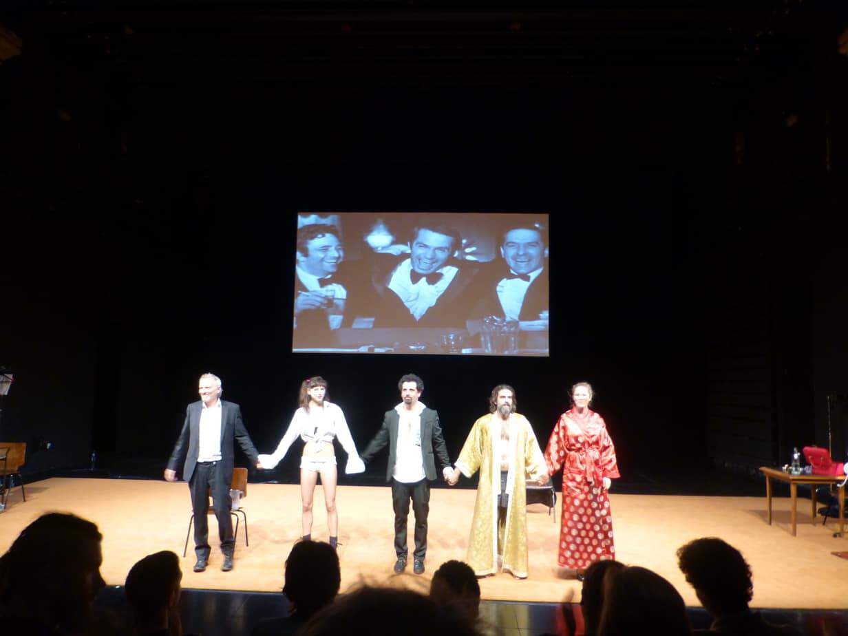 Jan Lauwers est un metteur en scène reconnu. Il avait fait sensation au Festival d’Avignon avec sa pièce La Chambre d’Isabella. Ses créations sont ouvertes à la pluridisciplinarité : texte, danse, vidéo, musique… Begin the Beguine montre cette vision moderne, la pièce s’inscrit aussi dans une dimension internationale avec des comédiens parlant plusieurs langues et venus de différents pays dont l’Argentine. Le tableau final se termine par une photographie noir et blanc, sur grand écran, de John Cassavetes et des deux acteurs amis. Dans un même élan enthousiaste, après un jeu de deux heures qui relève de la performance, les quatre comédiens entourés du metteur en scène se tournent vers la photographie-écran pour un bel hommage.