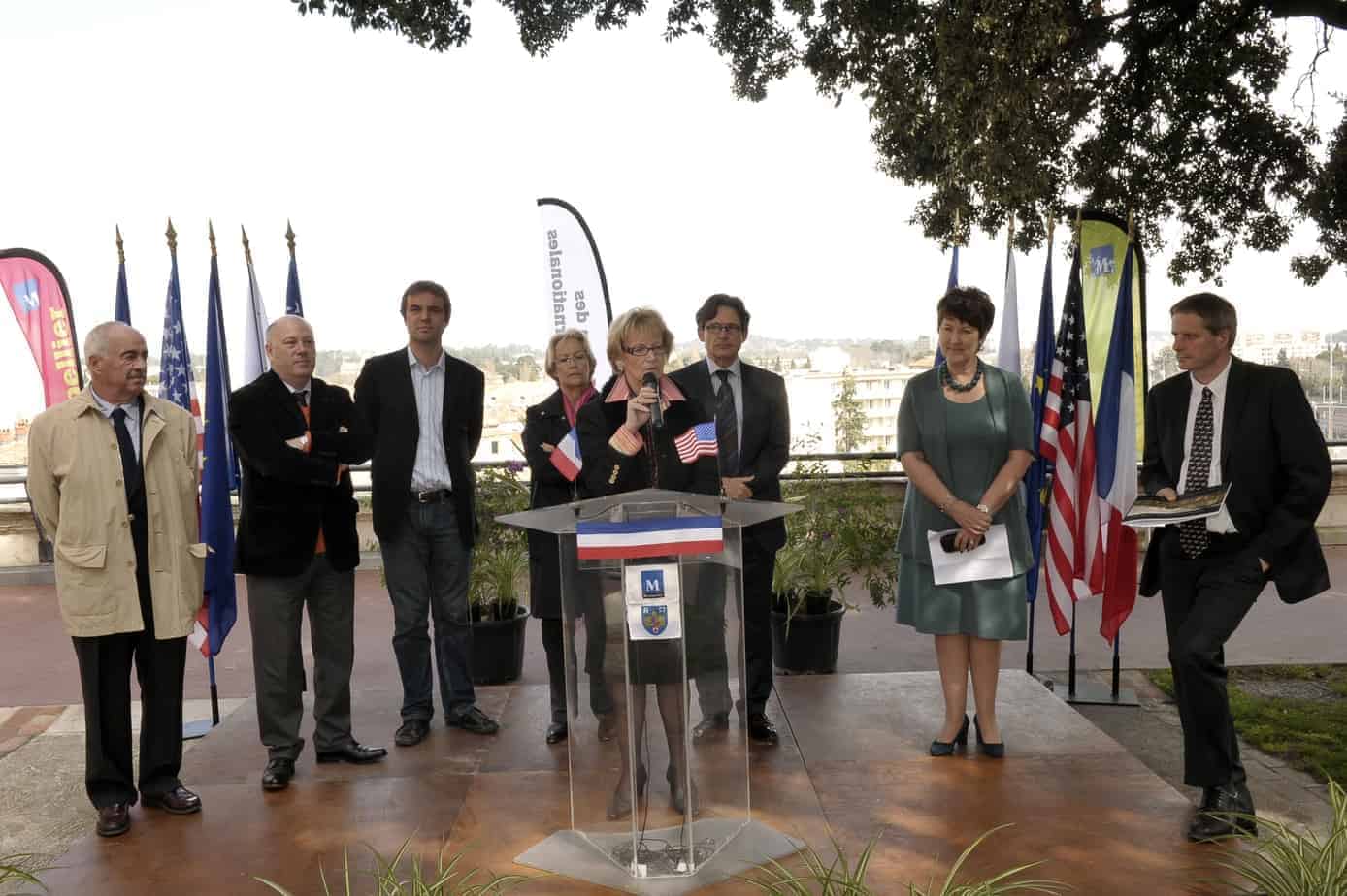 Hélène Mandroux inaugurait aujourd'hui une plaque commémorative en l'honneur de Thomas Jefferson, signataire emblématique de la Déclaration d'indépendance. En présence de madame le consul général des États-Unis Kathleen A. Riley, madame le maire a scellé à la maison des relations internationales les retrouvailles historiques de Montpellier et du 3ème président des États-Unis.