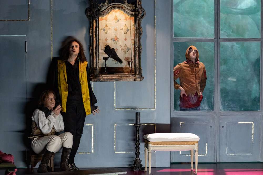 Au son des guitares électriques du groupe de rock The Lemon Twigs, la pièce est introduite par un premier portrait du « grand seigneur méchant homme ». Le maître débauché de Sganarelle (Vincent Winterhalter) utilise le mariage pour piéger ses proies. Or au XVIIe siècle, le mariage est sacré, il l’est aussi au XVIIIe siècle. Mais ce siècle-là est celui du marquis de Sade, libertin subversif embastillé, qui finit à l’asile de Charenton. Makeïeff a souhaité un Dom Juan enfermé dans sa psyché, et atténuer la dimension religieuse en transposant la pièce au Siècle des Lumières. La religion notamment le clergé – le clan des dévots pour Molière – va connaître ses heures sombres sous la Révolution française.